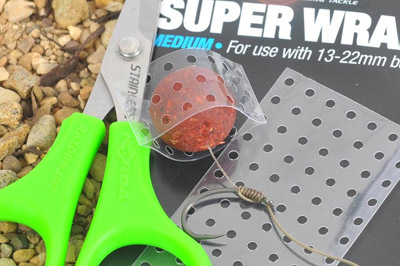 Muitas águas no país e no exterior contêm espécies incômodas, como lagostins, que podem reduzir sua isca ou arrancá-la do cabelo, e não há nada pior do que sentar e se perguntar se você ainda tem uma isca! O Super Wrap resolve esse problema e protege o seu anzol, ao mesmo tempo que permite que ele vaze a atração, graças aos pequenos furos neste revestimento de plástico transparente. É muito fácil de aplicar, basta cortar uma tira do tamanho correto do Super Wrap para o diâmetro da isca que está sendo usada e depois usar o vapor de uma chaleira para encolhê-la em volta da isca. Em seguida, repita o processo com outra tira colocada perpendicularmente à primeira – cobrindo assim toda a fervura com Super Wrap e evitando que seja danificada. Usar isso em conjunto com nossos Extenda Stops evitará que a isca seja arrancada do cabelo. Estão disponíveis três tamanhos diferentes – Pequeno para iscas de 8-12mm; Médio para iscas de 13-22mm; Grande para iscas de 23-32 mm.