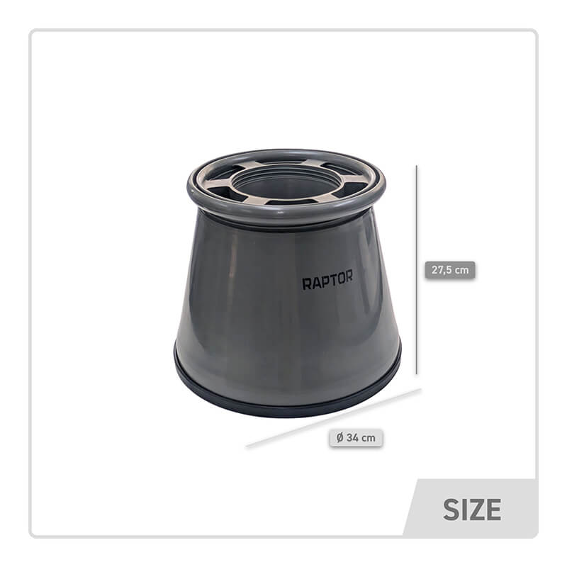 O Raptor Aqua Scope é uma ferramenta útil para visualizar seus mergulhos no barco. O Aqua Scope consiste em três partes. Quando você torce essas três partes juntas, é criado um balde de visualização com um grande painel de vidro na parte inferior. Ao colocá-lo debaixo d’água, você pode visualizar perfeitamente a estrutura do fundo em águas claras. Útil em águas com ervas daninhas ou onde você pode ver equipamentos e iscas no fundo.